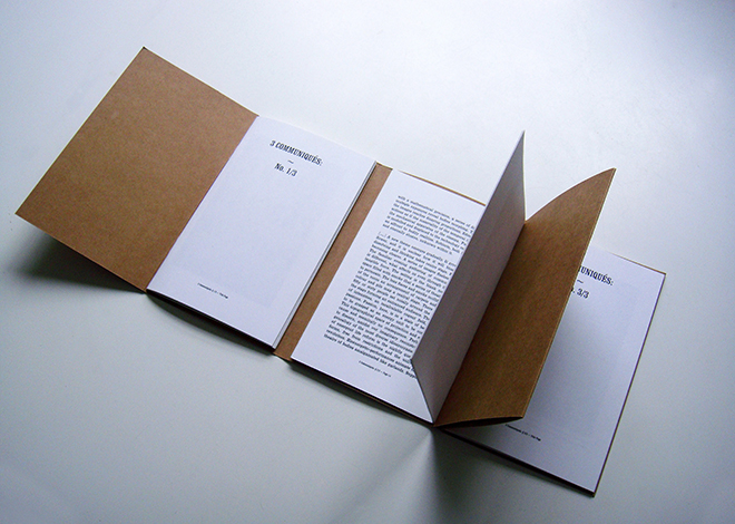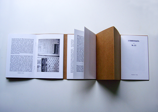 Published by Book Works in an edition of 1000 copies, London, UK, 2007; edited by Alun Rowlands; 230 x 165 mm; 80pp; thread sewn; 3 x fold-out pamphlets, 4-colour and b&w, 2 colour cover, saddle-stitched with concertina binding.