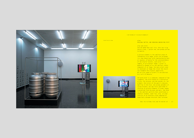 This was a treat; SecMoCo had the opportunity to work with Martin Clark and Steven Claydon again on the documentation for an exhibition, the themes and implications of which both had been formulating and discussing for a number of years.The design itself saw many changes, with on-going conceptual and formal reappraisal, ending up with a rigorous, thorough-going, appropriate solution.