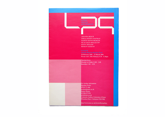 SecMoCo were flattered to be approached by this grouping of cutting-edge contemporary theorists/artists to devise an identity relavent to the ideas informing their exhibition, catalogue and symposium Little Private Governments which examined the relationship of art to organizational systems and power (University Gallery Essex, 01 February 2006).