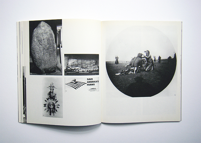 The front cover utilised an Arts Magazine cover from May 1978 depicting a seminal work by Robert Smithson that the artist had recreated in the gallery at MAO. As such, the title and cover information was transferred to the reverse, adopting the typographic style of the gallery ads of that period.