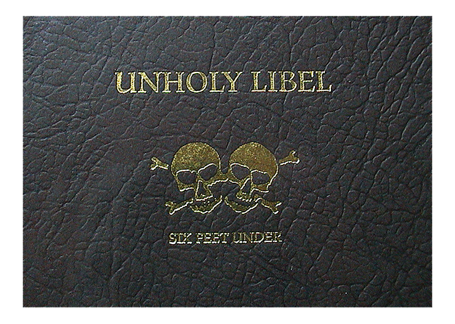 http://www.amazon.com/Unholy-Libel-Six-Feet-Under/dp/1880154145